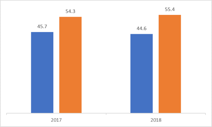 Overall there was an increase of 1.1 per cent in TU density between 2019-20. Male TU density increased by 1.5 per cent, and female TU density increased by 0.8 per cent.